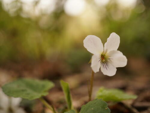 もみじ広場の古御堂保護区の近くに群落がありました。ニオイスミレが多いエリアですが、負けずに頑張っていました。 |