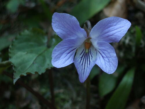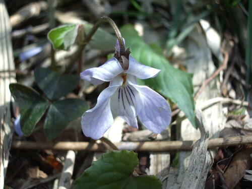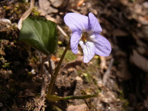 赤坂山の、雪が残っている林の中で見つけました。木漏れ日の中で、清楚な淡いブルーの花が宝石のように見えました。 |