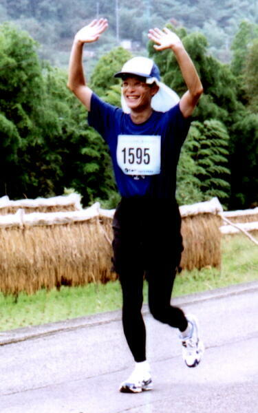 ![]() 四万十市へ出張しました。日本最後の清流、四万十川を初めて見て感動し ている私に、JA全農高知のtndさんが、この川沿いを走るマラソンの話をし てくれました。ちょうどその週の日曜日に開催されるマラソン大会こそ、四万 十川ウルトラマラソンだったのです。 「津田さんも走ってみんかね」 「うー ん、マラソンですか。走ったこと無いんですよ」 「普通のマラソンじゃない よ。ウルトラだよ、100kmだよ」 「えっ、100kmですか?」 フルマラソン42. 195kmも走ったことがない私でしたが、100と言う数字に魅かれました。「走 ってみんかね」 たたみかけるtndさん。私は自分と相談しました。 『走れる かな?』 『全く予想できない』 『練習してもダメかな?』 『難しいだろう』 『無理ではないな?』 『わからない』 この間、ほんの一瞬でしたが、私は決 心しました。「やってみましょう!」 この一言にtndさんは、とても喜んでくれ ました。それから後、tndさんは、「来年のウルトラマラソンに、三共アグロ (現在の三井化学アグロ株式会社)の津田さんが走るんよ」 と、あちこちで 宣伝してくれました。おかげでどこへ行ってもその話題で盛り上がり、三共ア グロの知名度はこれまでにないほど上がったのです。 手術から1ヶ月間は激しい運動を控えるよう言われていたのですが、3週間 が過ぎればもう良いだろうと、10月29日からトレーニングを開始しました。こ の日から毎週、天気のよい休日は全て走ることにしました。走る距離も最初 は3km程度だったものを、5km、10km、15kmと伸ばして行きました。8月のお 盆休みからは、実戦を想定した練習に取り組みました。暑さ対策と給水の 練習です。自宅を基点として1周5kmのコースを走り、給水してまた走りま す。この練習には、長男が大いに協力してくれました。真夏の日中に走るこ の練習は、厳しいものでした。30kmを目標に走りましたが、足が攣って走れ なくなることもありました。給水に失敗して、熱中症でフラフラになったこと も。大会まで3週間に迫った時点で、たった30kmでさえまともに走れない自 分には、100kmと言う距離が果てしなく遠いものに思えたのです。 10月6日、本番で使うシューズを履いて最後の練習を終えました。結局、1 回の練習の走行距離は最高で30km、1年間で走った距離が1074km。最も 練習量が多かった9月の走行距離が180kmでした。ウルトラマラソンを走る には、1ヶ月に300-500km、最低でも200kmが必要と言われていますので、 私の練習量は少ない部類に入ります。それでも、平日の睡眠時間が5時間 未満と言う環境の中で、精一杯のことをしたと思います。最後の1週間は、 体調管理に気を使いました。ところが。10月12日(金曜)、自宅での最後の 夕食はカキフライでした。カキが大好きな私はつい食べ過ぎてしまい、翌13 日(土曜)の朝は腹痛で目が覚めました。あれだけ体調管理に気をつけてい たのが、一晩でご破算です。悪いことは続くもので、野洲から新大阪へ向か う新快速は、人身事故で大幅に遅れました。新大阪から伊丹空港へのバス に乗り遅れた私は、タクシーで空港へ。最悪な気分でしたが、それで逆に開 き直りました。機中ではほぼ熟睡し、松山空港に着いた時には平静を取り 戻しました。松山空港から車で3時間、ようやく高知県四万十市に到着。前 夜祭は5時に始まりましたが、あっという間に食べるものが無くなり、予定よ り1時間も早い6時に終了。床に就いたのは9時半。 そして、14日(日曜)。早朝2時過ぎに起床。オニギリ2個、パン4個、ゼリー飲料2袋を食べてから風呂に入り、3時半に仲間 とホテルを出発。100kmスタート地点である蕨岡中学のグラウンドは、約 1900人のランナーに加え、ボランティアや報道陣ですごい熱気でした。開会 式が終わると、選手はスタート地点へ。5時30分、まだ夜明け前で暗い中、 第13回四万十川ウルトラマラソンがスタートしました。15kmほど走ると急な 上り坂になり、最初の難関、高低差600mの峠越えです。疲れたら歩こうと思 っていましたが、呆気なくクリア。調子に乗って下り坂をかなり飛ばしまし た。これがいけなかったようで、50kmを過ぎた辺りから、右膝が痛み始めま した。62kmの休憩所では、待っていた仲間に心配かけまいと明るく振舞って いたものの、そこを出発して3kmも走らないうちに、右膝はほとんど動かせ ない状態に。残り35km。残された時間は、6時間半。 痛みで動かせなくなった右膝。休んでも回復しないと判断した私は、残り 35kmを休憩なしで進むことにしました。と言っても、右膝が動かせないの で、左足だけが頼りです。高校時代に陸上部を辞めたのは、この左足の膝 を痛めたからでしたが、今はその左足に全てを賭けるしかありませんでし た。四万十川ウルトラマラソンでは、シューズにICタグを付けて走ります。こ れが20km毎に設置されたセンサーで感知され、携帯電話にメールが届く仕 組みになっていました。62kmで別れた後、なかなか80km通過のメールが届 かないので仲