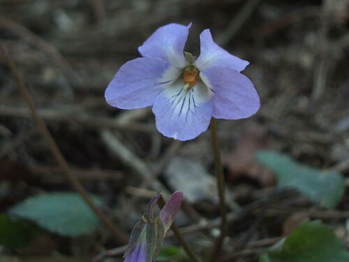 山頂付近はまだかなりの雪が残っていましたが、暖かな林の中で咲いていました。まっすぐに立った花が凛とした感じで、とても綺麗です。 |