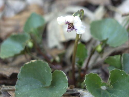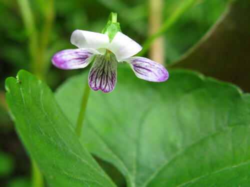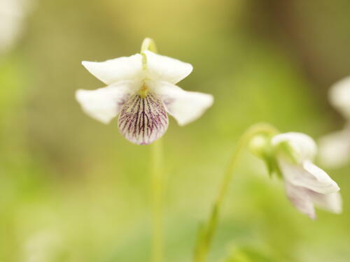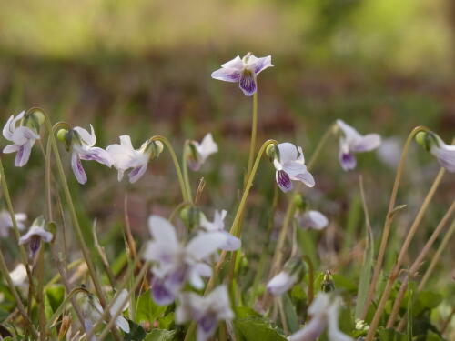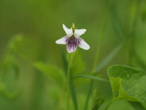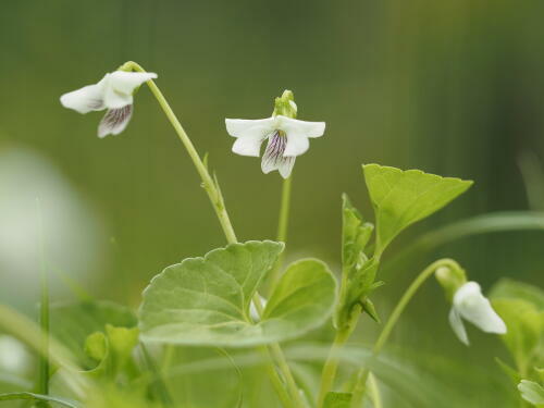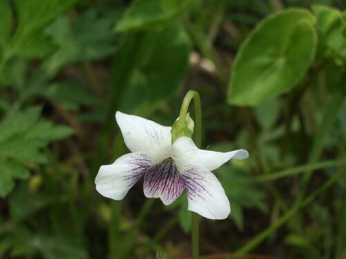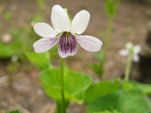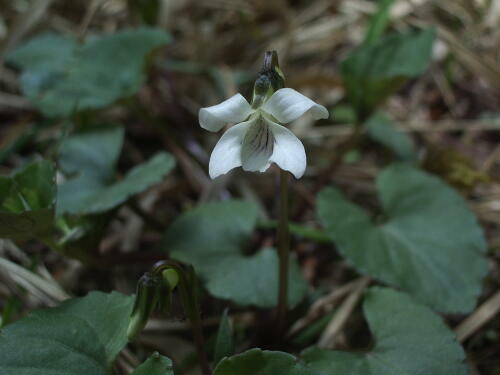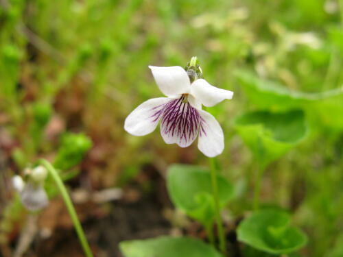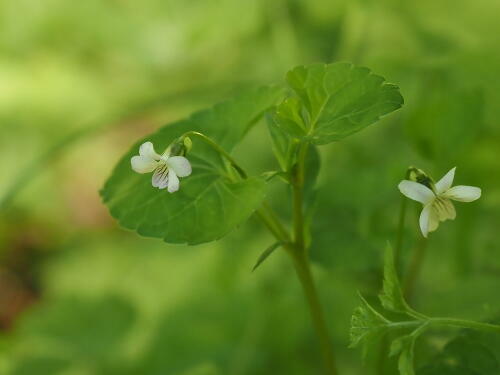 御池から出世不動明王への参道沿いに群落があります。他のすみれたちが咲き終わるころ、小さな白い花をいっぱい咲かせてくれます。 |