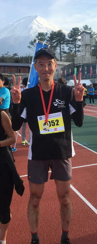 加すると聞いていましたが、え、何でもう着替えてるの? ウルトラマラソン 常連のOGWさんですが、今回は残念ながらリタイアされたとのこと。富士山 を背景に写真を撮ってくださいました。これは本当に、とっても嬉しかったで すね。OGWさん、ありがとうございました!! ![]()