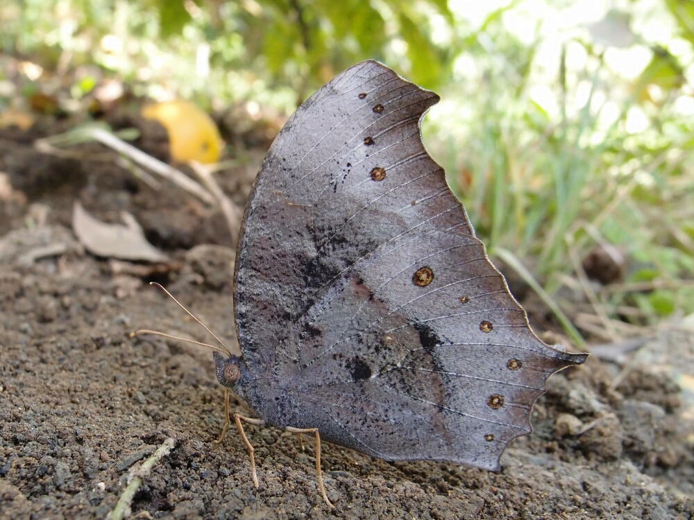 地面に落ちた柿の実の汁を吸いに来たようです。