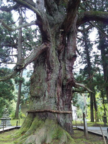 を引きずって、虫川大杉に会いに行きました。樹齢1200年の大木はコース のすぐ横にありました(左下の写真)。2年前と昨日の2回、真横を通ってい たのに私は気が付かなかったのです。まるで、完走するまでその姿を見せ てくれなかったかのようでした。 ![]()