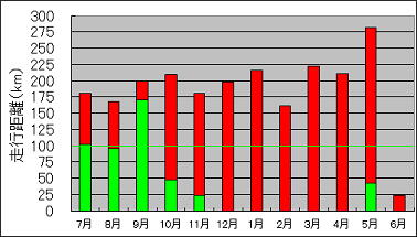 2018年7月から2019年6月までの、月間走行距離をまとめたグラフです。