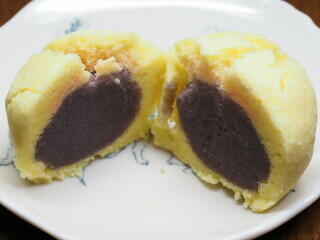 ほろほろ食感の黄身餡。中はこし餡。やや甘い。 |
