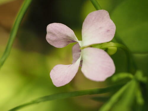 木道沿いに咲いていた花を上から撮影してみました。淡い桃色の花弁が、なんとも愛らしい印象です。 |