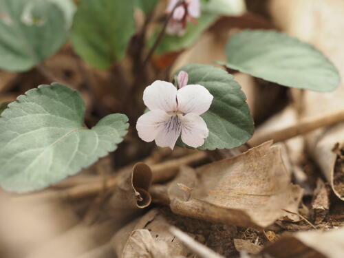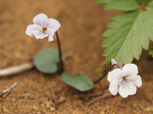 個体数の少ないスミレと聞いていましたが、自生地域にはたくさんいました。砂まみれですが、なんだか心地よさそうです。 |