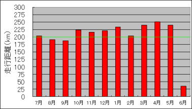 2022年7月から2023年6月までの、月間走行距離をまとめたグラフです。