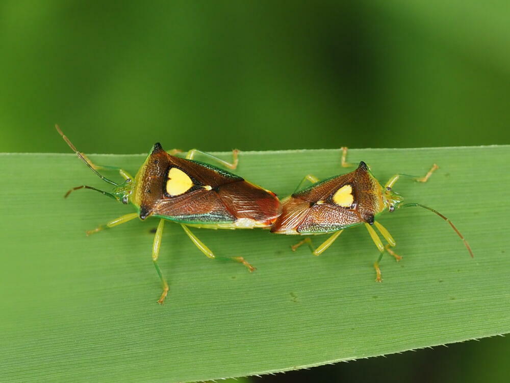 撮影に夢中になって近づきすぎると、葉っぱの裏側に隠れてしまいました。
