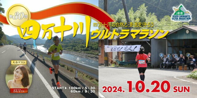 わて銀河ウルトラマラソン」ともに30q前後で左膝が痛くなって走れなくな り、残り65-75qをほぼ早足で完走しました。このため、今回は前半、左膝に 過度な負担がかからないようゆっくり走ることにしました。20q、30qは無事 に通過しましたが、40qの手前から、左膝に痛みが出てきました。最初は痛 みが強くなると早足にし、痛みが薄れると走るようにして対応しましたが、50 qを過ぎるとほぼ走れない状態になりました。前半抑えて走った分、時間の "貯金"も無し。毎度のことですが、またしても大ピンチ。しかし、もう100qマ ラソンもこれで13回目の挑戦。この程度のことは想定の範囲内。とは言え、 50qの通過は11:22。四万十川ウルトラマラソンは今回で3回目ですが、17 年前の1回目(ウルトラマラソン初挑戦)、9年前の2回目(当時のベストタイ ムを更新)、のどちらと比べても30分近く遅いタイムです。せめてウルトラマ ラソン初挑戦時の私には勝ちたい。諦めずに前進、前進、前進です。