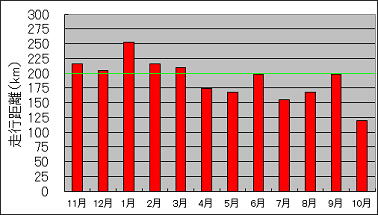2023年11月から2024年10月までの、月間走行距離をまとめたグラフです。