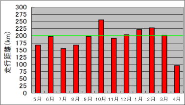 昨年の夏は暑すぎたので、短い距離の練習しかできず特に7-8月の練習量が少なくなっています。また、昨年10月分には、四万十川ウルトラマラソンの走行距離(「100q)も含まれています。 |